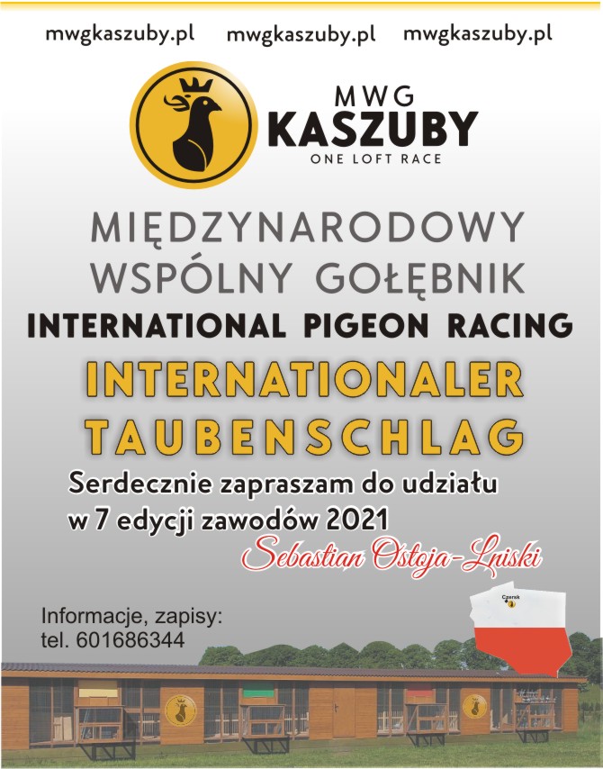 Na początku marca odbędzie się losowanie gołębia podarowanego przez Reinharda & Inę Muhl. W krótkim materiale wideo zaprezentowano gołębia. Warunkiem wzięcia udziału w losowaniu jest zapisanie się do końca lutego b.r. na listę uczestników edycji 2021 MWG Kaszuby oraz dokonanie wpłaty zaliczki w wysokości 400zł. Serdecznie zapraszam Sebastian Ostoja-Lniski