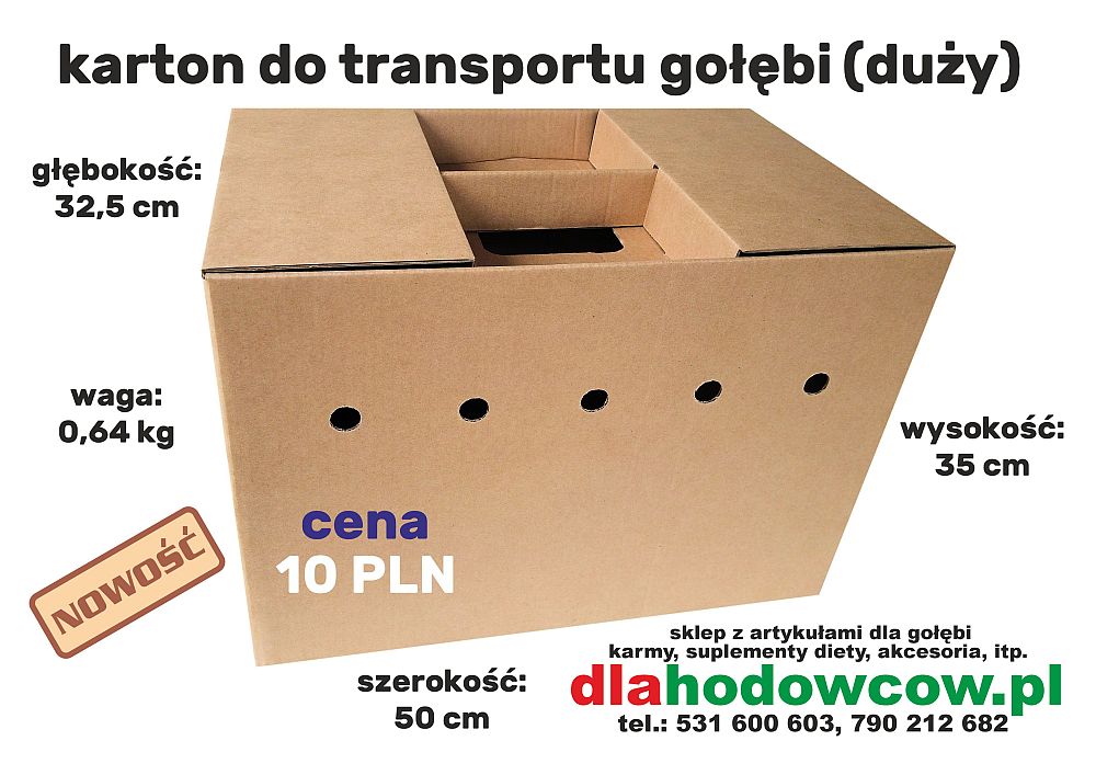 Już niedługo większość hodowców będzie miała gołębie młode, które będą chcieli wysłać czy to na wspólne gołębniki czy tez do innych hodowców. Zawsze możemy do transportu użyć jakiś zwykłych kartonów, które mamy pod ręką. My staramy się kolegom to ułatwić oferując specjalne kartony do transportu gołębi. Wcześniej prezentowaliśmy kartony modułowe na pojedynczego gołębia, które możemy sobie skleić i wysłać tyle gołębi ile będziemy chcieli. Teraz natomiast prezentujemy nowy karton, który wymyśliliśmy specjalnie do transportu na raz większej ilości gołębi, zwłaszcza młodych. Jak on wygląda, jakie ma wymiary, jak się go składa i ile kosztuje dowiecie się z tego filmu. Karton ten oczywiście można też użyć do transportu innych zwierząt, np. kur, królików i innego drobiu, małych psów, itp.
