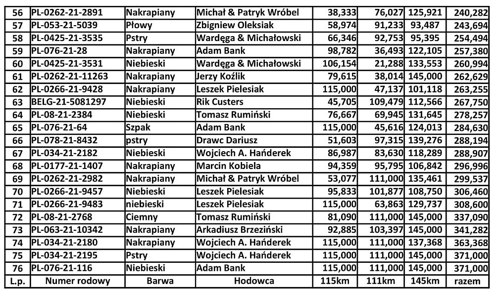 Na gołębniku w Łubnianach gołębie miały już 3 loty powyżej 100 km. Jeden z oddziałem a dwa zorganizowane samemu. Na bazie wyników z tych 3 lotów kolega Patryk Wróbel dokonał zestawienia najlepszych lotników według współczynnika uwzględniającego pozycję gołębia, ilość gołębi na locie oraz dystans. Zobaczmy co z tego wyszło.