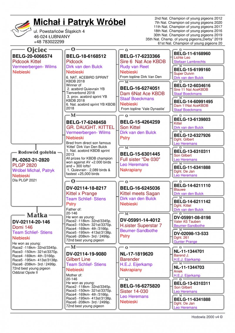 Właśnie przed chwilą na stronie Oddziału PZHGP 023 Lipowa pokazały się wyniki dzisiejszego lotu. Jesteśmy akurat w trakcie wstawiania ich do nas na stronę. Teraz jednak chcemy pokazać na szybko jak wygląda lista konkursowa kolegi Krzysztofa Mrowieca w tym oddziale. My możemy mu tylko pogratulować. Na 108 włożonych gołębi zdobył 72 konkursy. Oczywiście tak jak obiecywaliśmy zamieszczamy też rodowody trzech najlepszych gołębi na tym locie. Tak się składa, że był to pierwszy i
