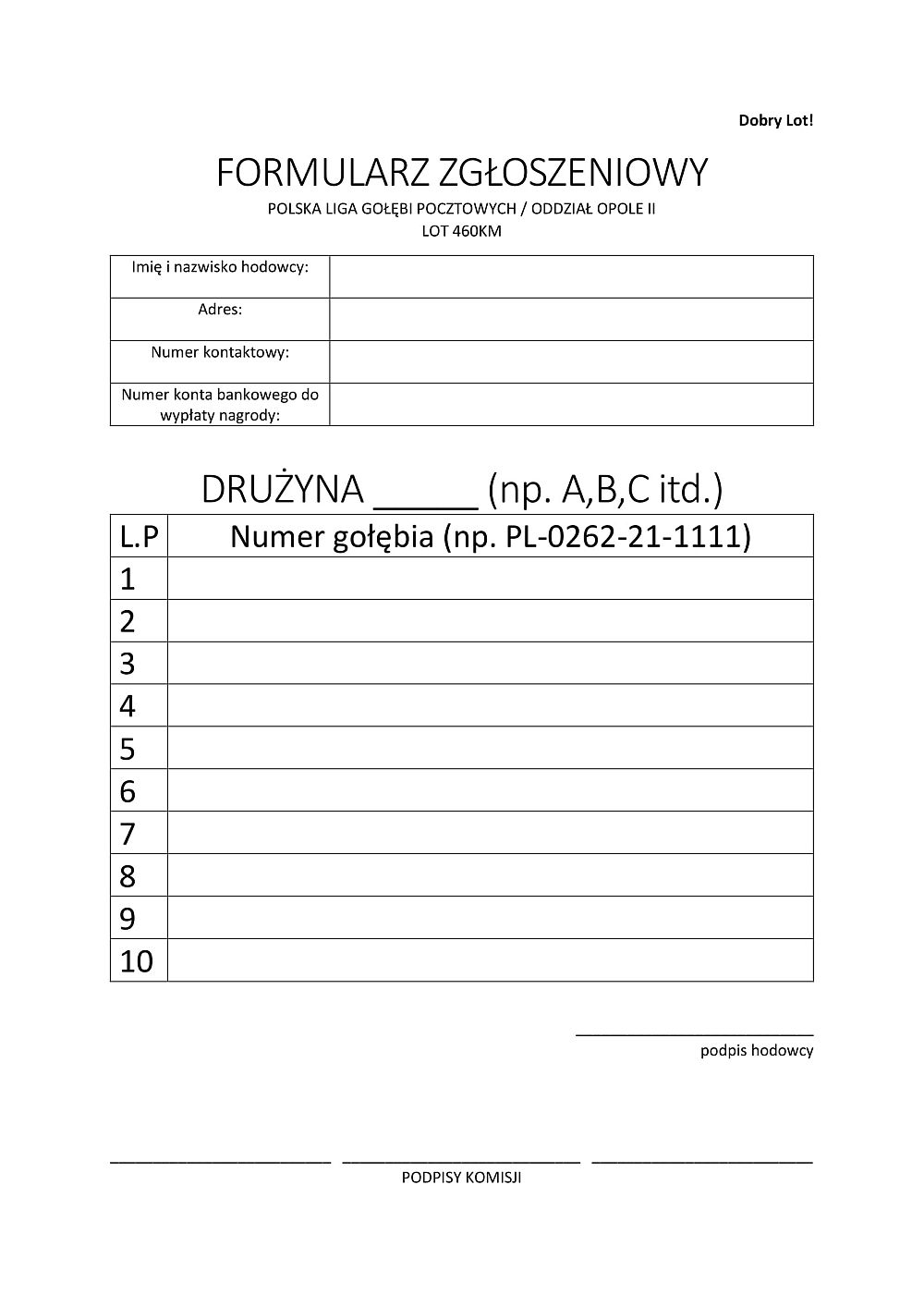 LOT DODATKOWY GOŁĘBI MŁODYCH - 460 km