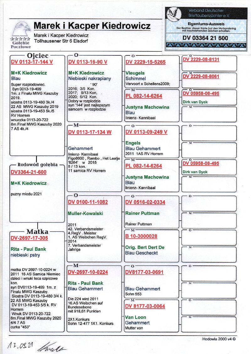 Trwają zapisy na edycję 2022 MWG Kaszuby. Wśród uczestników, którzy zapiszą się na listę uczestników do końca listopada b,r, zostanie wylosowany gołąb podarowany przez Marka Kiedrowicza (pełne rodzeństwo do gołębia, który wygrał lot finałowy w 2019 roku). Gołąb jest zaprezentowany przez samego hodowce na filmie dołączonym do tej informacji. Serdecznie zapraszam do udziału w 8 edycji zawodów. Rozpoczęły się również aukcje gołębi, które ukończyły sezon 2021, w tym bardzo ciężki lot finałowy. Sebastian Ostoja-Lniski (organizator)