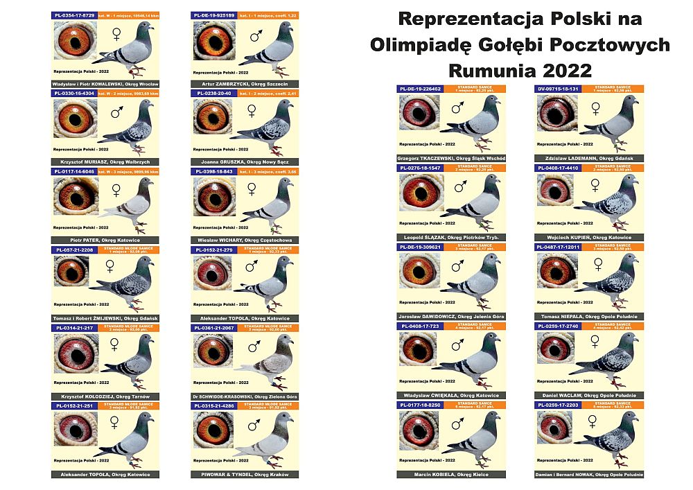 Podobnie jak w latach poprzednich prezentujemy zdjęcia gołębi z Reprezentacji Polski z 70. Wystawy Gołębi Pocztowych - Katowice 2022. Gołębie te mają reprezentować Polskę na Olimpiadzie Gołębi Pocztowych która ma się odbyć w Rumuni. Niestety szczegóły nie są nam znane kiedy i w jakiej formule ma się ona odbyć. Dzisiaj natomiast możemy zobaczyć czyje gołębie będą Polskę reprezentować.