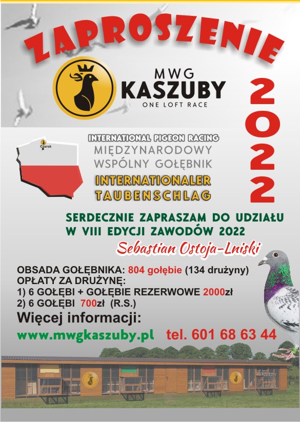 29 marca przyjęliśmy pierwsze gołębie z drużyny Ingi Weltrowskiej. W krótkim materiale filmowym zaprezentowano procedurę przyjęcia gołębi. W związku z tym, że dysponujemy jeszcze miejscami zapraszam wszystkich zainteresowanych do współzawodnictwa w sezonie 2022. Przypominam, że koszt uczestnictwa za drużynę wynosi odpowiednio 2000 zł (6szt. + 4 gołębie rezerwowe) lub 700 zł Drużyna R.S. (6szt. + 2 rezerwowe). Nie ma oczywiście obowiązku przysyłania gołębi rezerwowych, które jednak w przypadku zaginięcia lub padnięcia gołębi podstawowych bezpłatnie je zastępują. Sebastian Ostoja-Lniski