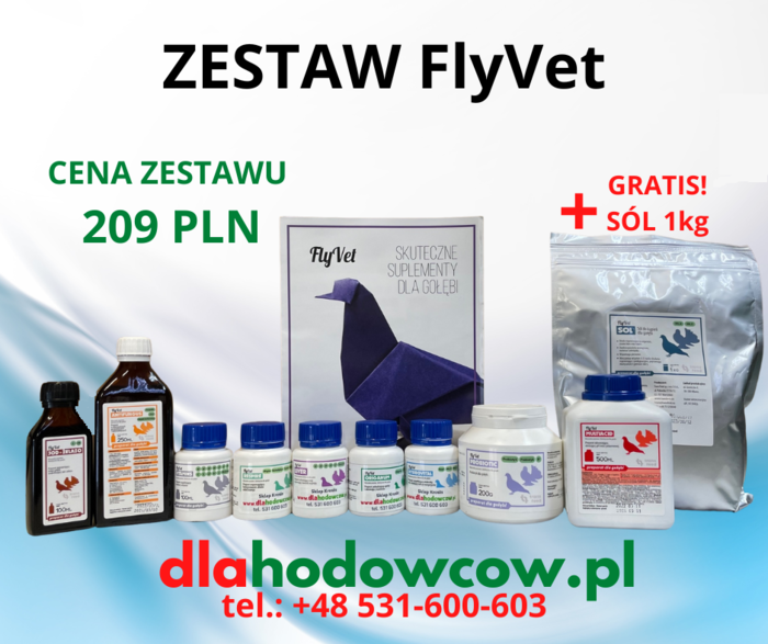 We wcześniejszym filmie prezentowaliśmy ofertę na karmę MARIMAN, która była jeszcze do wczoraj dostępna w sklepie dlahodowcow.pl w Krosinie. Cieszyła się ona tak dużym zainteresowaniem, że towar został już wyczerpany. Mamy nadzieję, że również kolejne promocje w sklepie dlahodowcow.pl w Krosinie będą cieszyły się takim zainteresowaniem. Teraz prezentujemy zestaw dla gołębi młodych, który bazuje na produktach firmy FLYVET. Wysokiej jakości i bardzo wydajne produkty tej firmy oraz brak kosztów związanych z wysyłką na pewno skłonią niejednego hodowcę do ich zakupu.