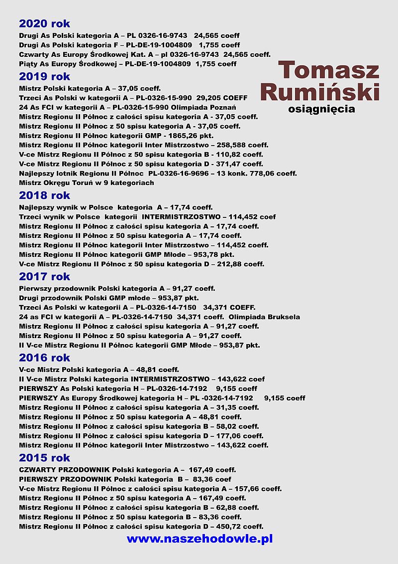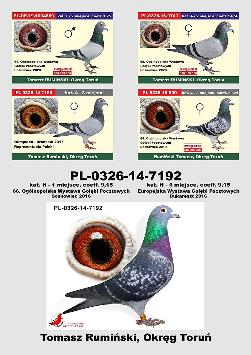 W dniu jutrzejszym kończą się aukcje gołębi kolegi Tomasza Rumińskiego. Zdążyliśmy się przyzwyczaić do tego, że kolega Tomasz co roku zdobywa tytuły mistrzowskie w różnych kategoriach. Miał gołębie na Europejskich Wystawach Gołębi a także na Olimpiadzie. Nie inaczej było w tym roku. Jego gołębie zawsze możemy znaleźć na początku list konkursowych. Wielu hodowców, którzy nabyli od niego gołębie może potwierdzić, że na pewno przyczyniły się one do wzmocnienia hodowli. Teraz możemy się w tym filmie zapoznać z gołębiami, które kolega Tomek przeznaczył na sprzedaż.