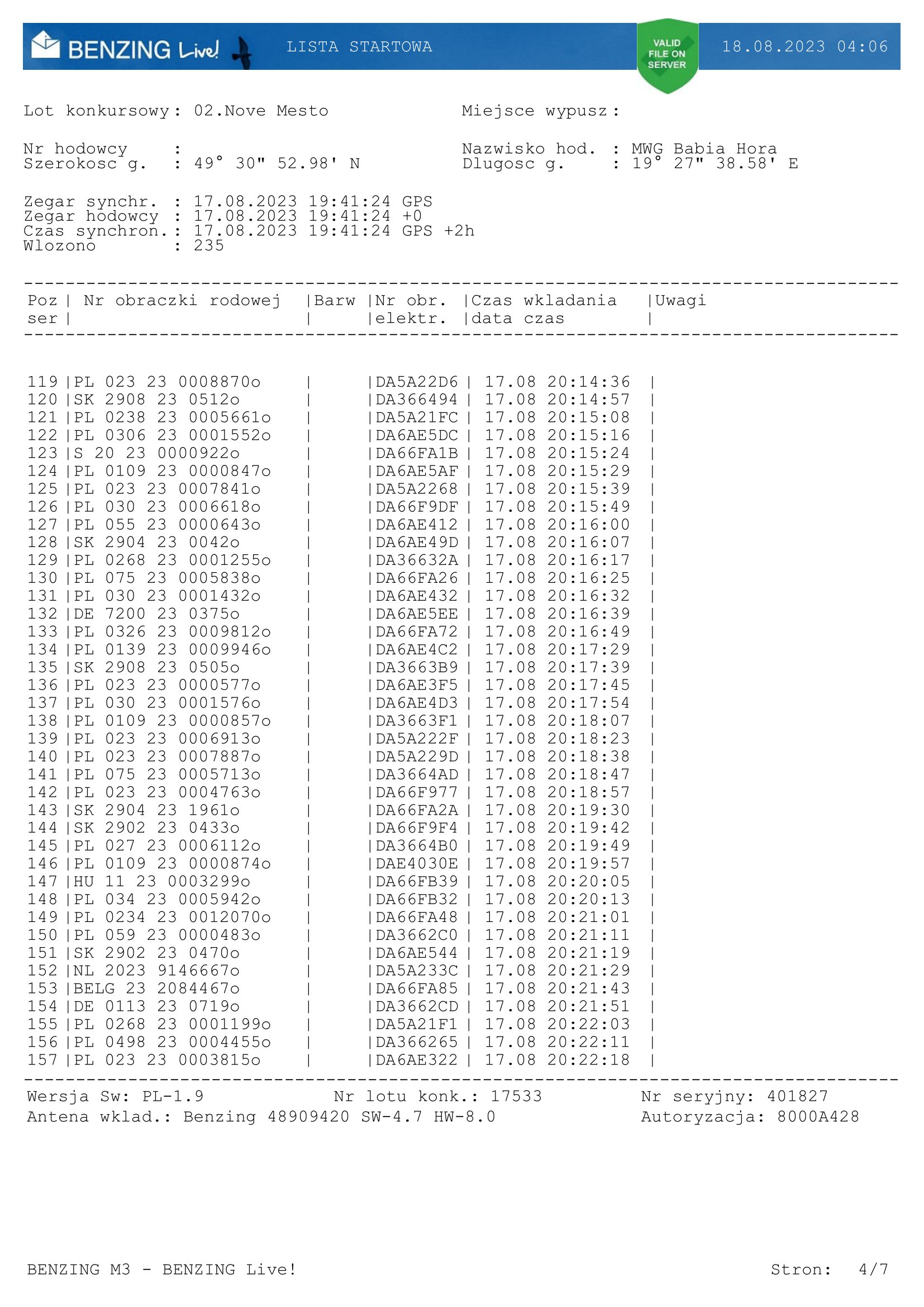 Przed nami drugi lot konkursowy. Tym razem gołębie będą leciały z okolic miejscowości Nove Mesto n.Váhom (ok. 142 km). Wczoraj gołębie wieczorem zostały zakoszowane. Było ich 235 sztuk. Za chwilę zostaną wypuszczone. W koszowaniu pomagali koledzy Mariusz Murański i Jozef Zosak. Liste zakoszowanych gołębi możemy zobaczyć poniżej lub w dziale loty. Należy pamiętać aby się zalogować na strone BENZINGA podając dane do logowania (login: babiahora2023 i hasło: Magda1972). Proszę zwrócić uwagę na dokładne wpisanie loginu i hasła. Po zalogowaniu się możemy zobaczyć listę zakoszowanych gołębi. Nic innego nam teraz już nie pozostaje jak cierpliwie czekać na gołębie.