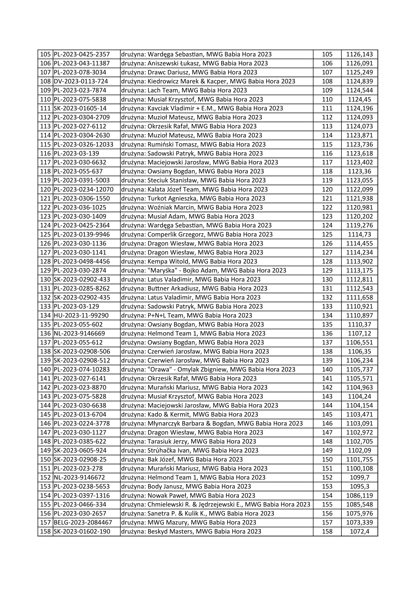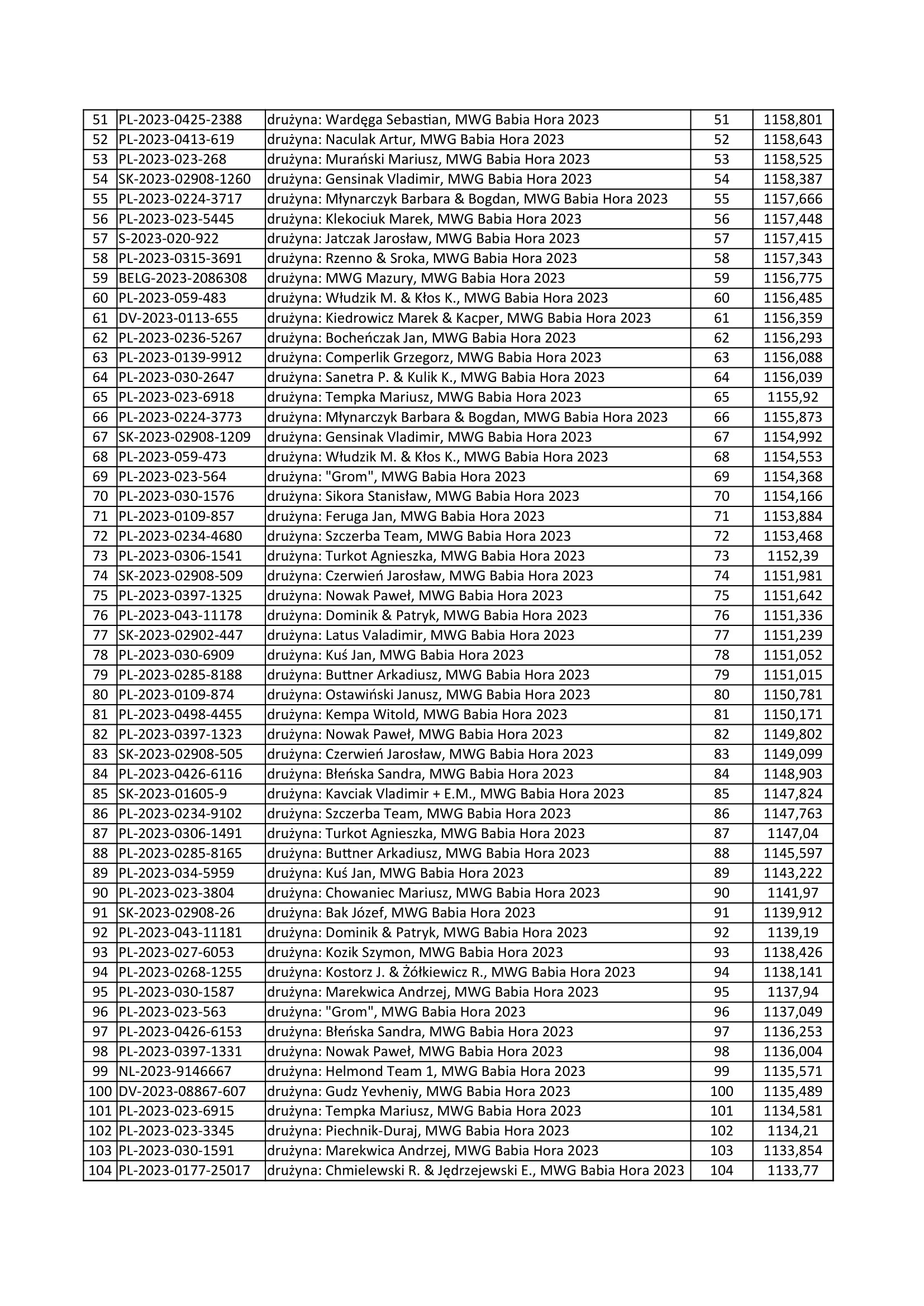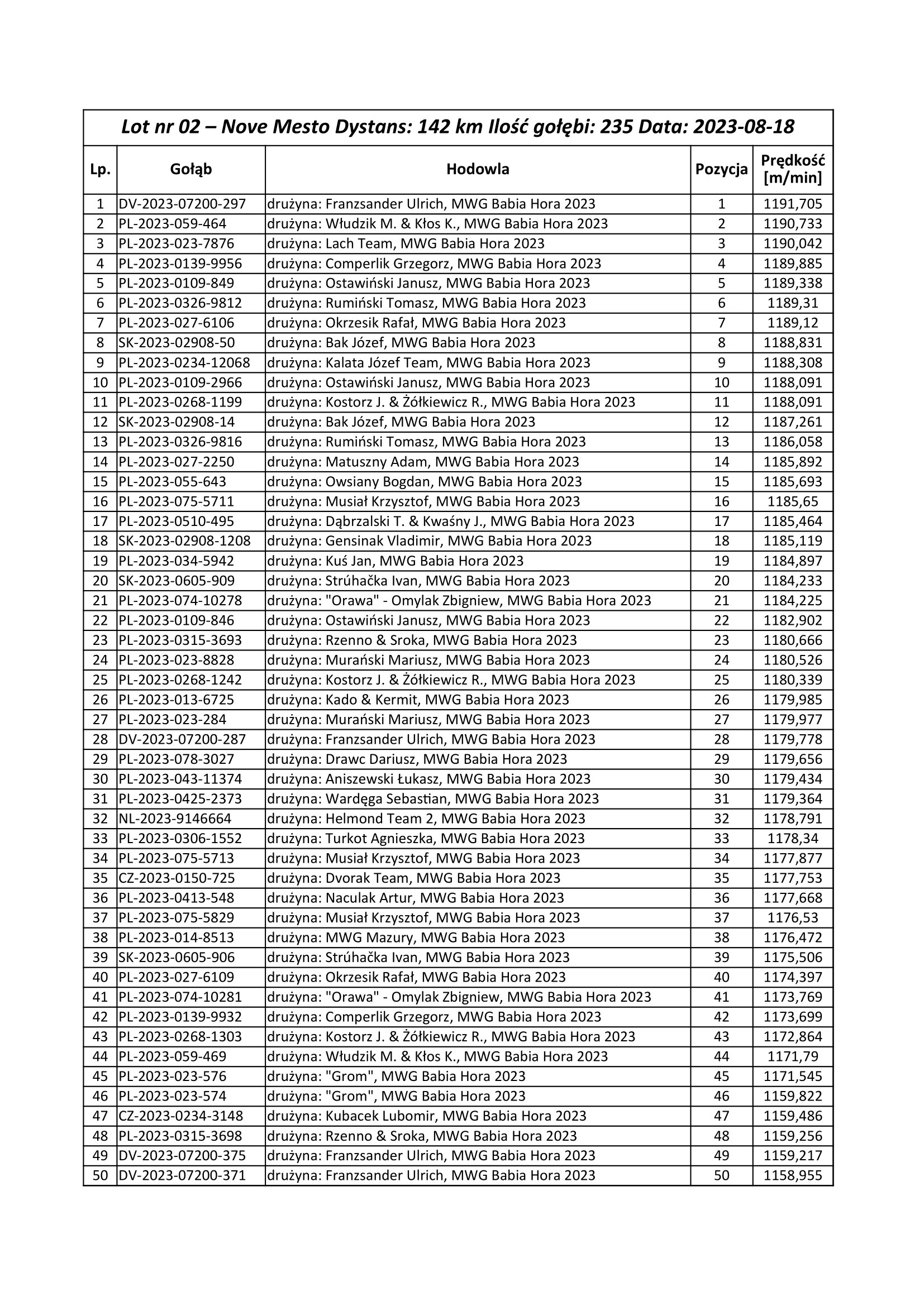 Już wiemy, które gołębie wygrały dzisiejszy lot. Z ich listą możemy się zapoznać poniżej lub wejść na stronę BENZINGA, gdzie cały czas możemy obserwować powracające ptaki. Należy pamiętać aby zalogować się na strone BENZINGA podając dane do logowania (login: babiahora2023 i hasło: Magda1972). Proszę zwrócić uwagę na dokładne wpisanie loginu i hasła. Po zalogowaniu się możemy zobaczyć listy gołębi zakoszowanych, tych które wróciły oraz brakujących.