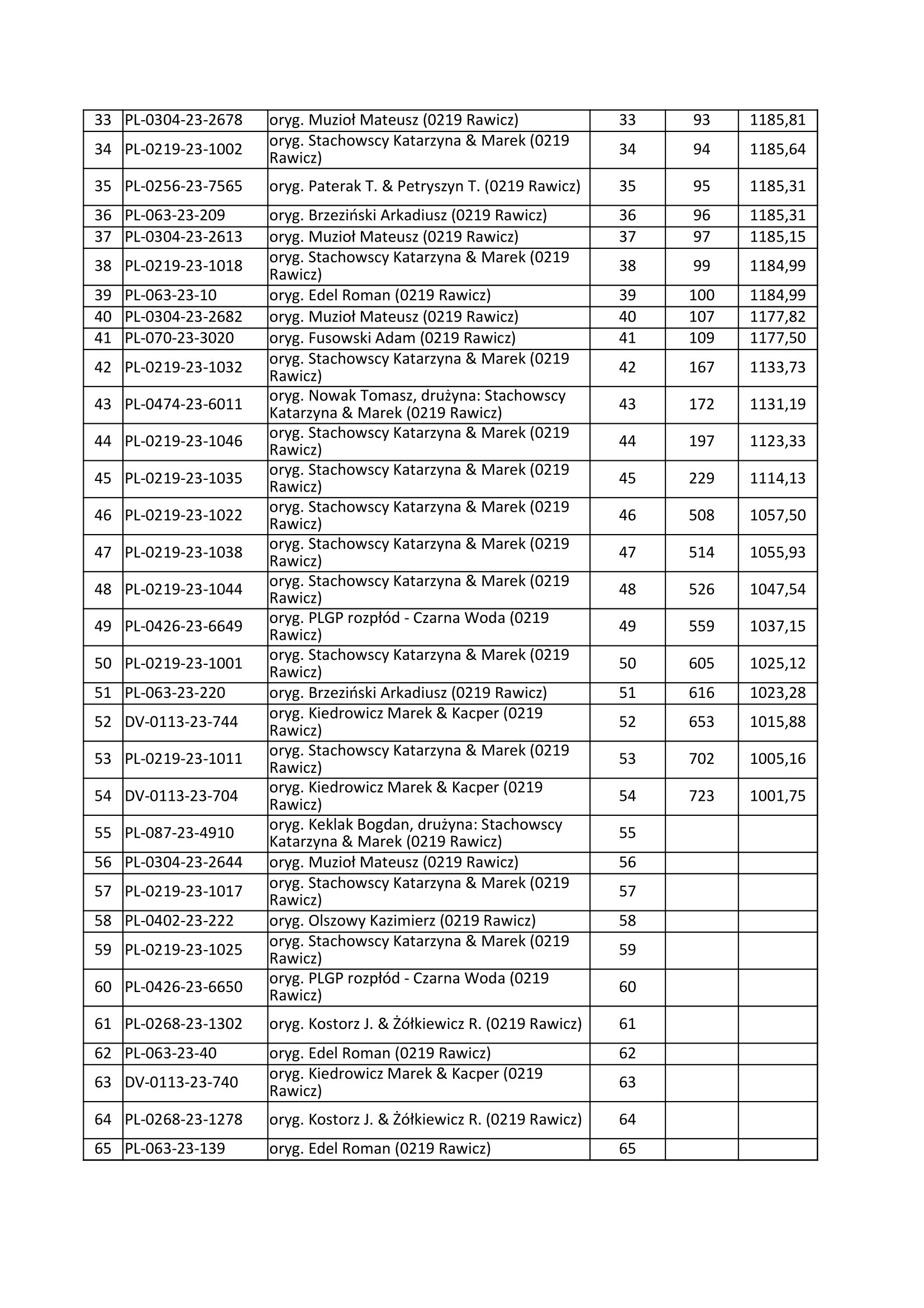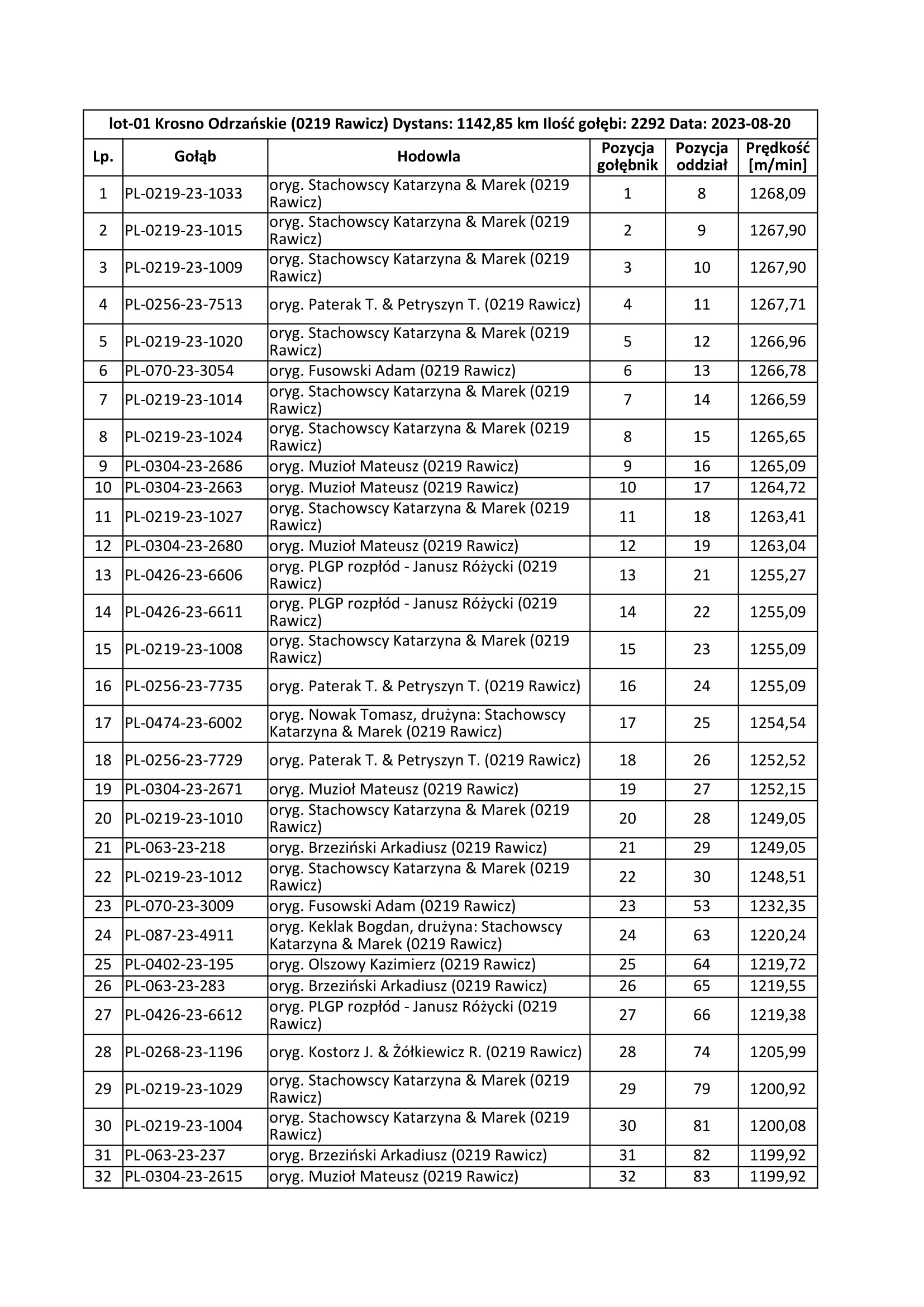 PLGP Oddział PZHGP 0219 Rawicz, K. & M. Stachowscy - lot 1 - Krosno Odrzańskie - 20.08.2023r.