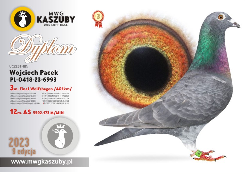 Już w najbliższą sobotę odbędzie się finał I Aukcji ze Wspólnego Gołębnika Kaszuby. Na aukcji oferowanych jest m.in. pierwszych 10 gołębi z lotu Finałowego i 3 Najlepsze Lotniki. Gołębie są zaprezentowane w krótkim materiale video dołączonym do aukcji. Serdecznie zapraszam również do udziału w X Jubileuszowej edycji zawodów - Sebastian Ostoja-Lniski (Organizator)