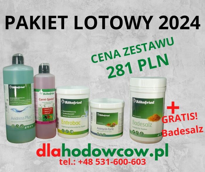 Spośród wielu zestawów promocyjnych przygotowanych w sklepie dlahodowcow.pl jest zestaw lotowy dla gołębi młodych firmy ROHNFRIED. Już niedługo będziemy kończyć lotowanie gołębiami dorosłymi a po krótkiej przerwie rozpoczną się loty gołębi młodych. Mamy teraz idealny moment aby uzbroić się na ten okres w odpowiednie suplementy. W sklepie dlahodowow.pl znajdziemy wszystko co nam potrzeba.