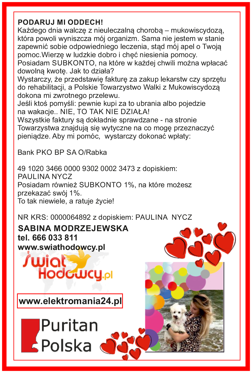 Przygotowaliśmy dla Państwa bardzo dużo atrakcyjnych promocji. Oraz do uczestniczenia w akcji charytatywnej "podaruj mi oddech". Szczegóły na Fb. Sabina Modrzejewska oraz na naszych stoiskach numer: 18 (zaraz przy wejściu), 110 ( z lewej strony pod ścianą na środku hali).