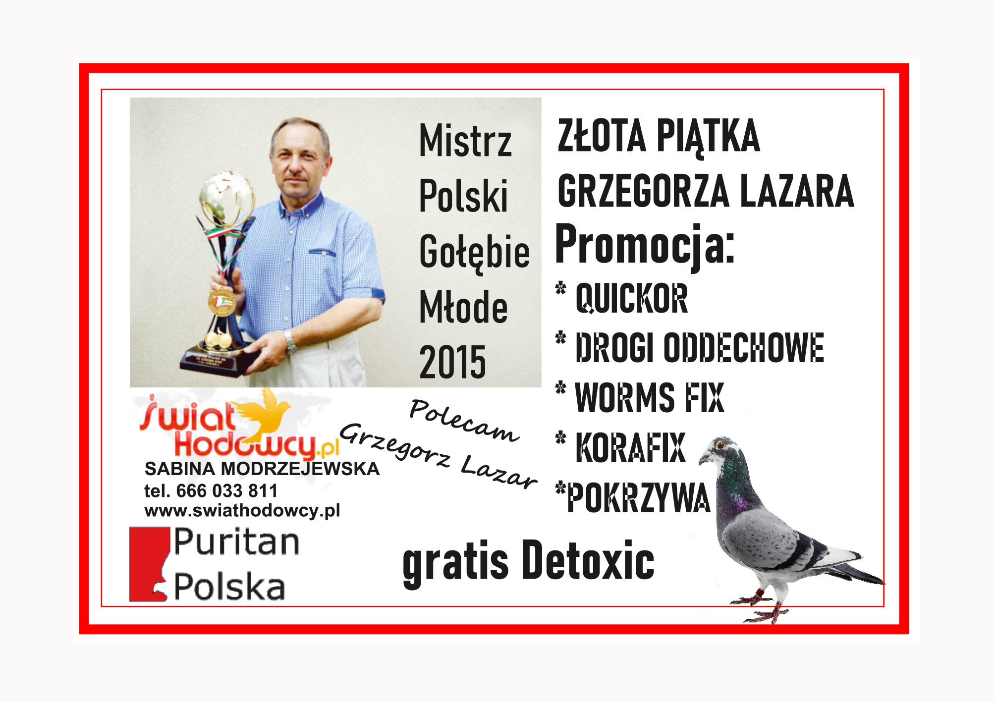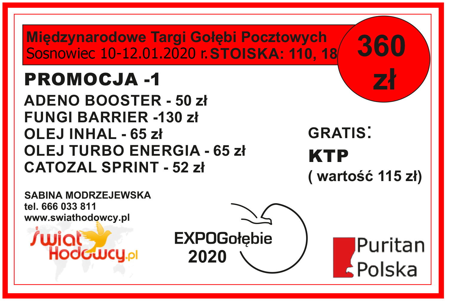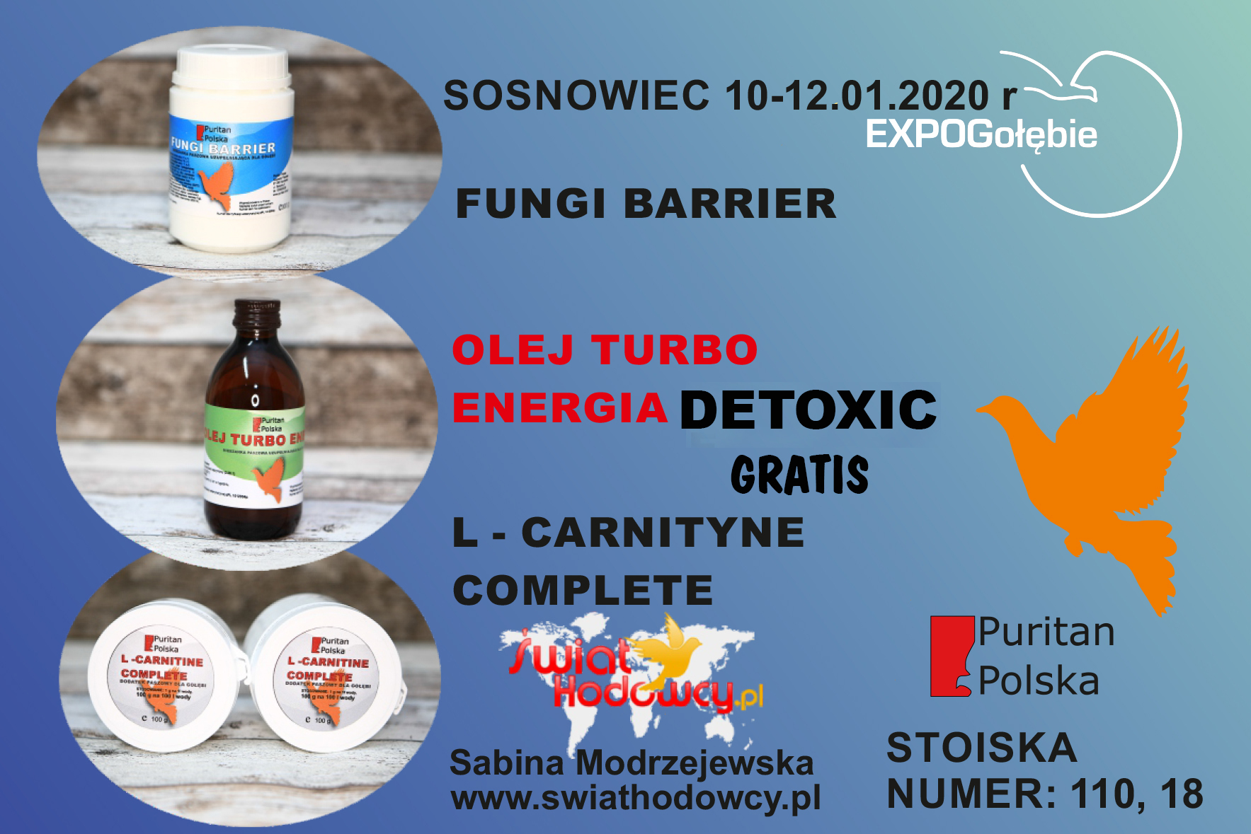 Jednocześnie zapraszam do odwiedzenia firmowych stoisk Puritana podczas tegorocznej Wystawy Gołębi w Sosnowcu.