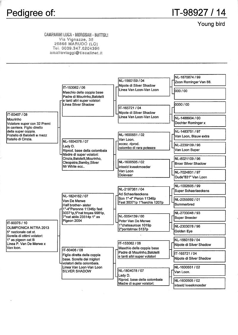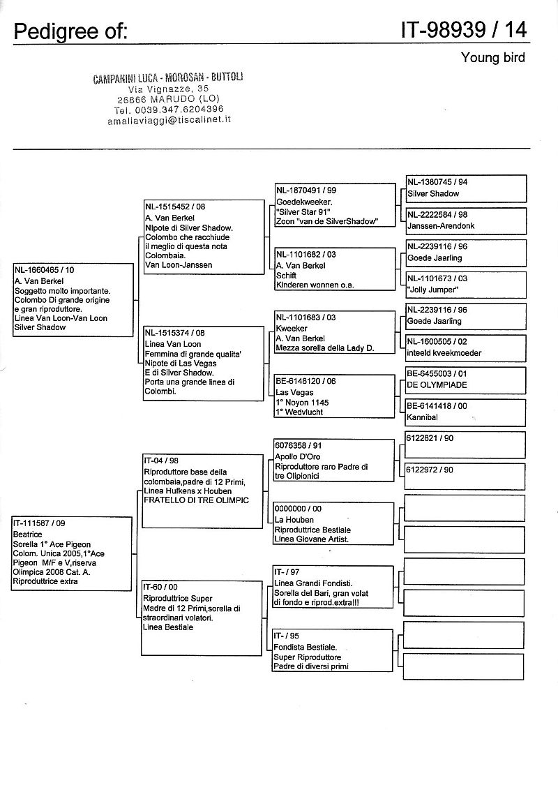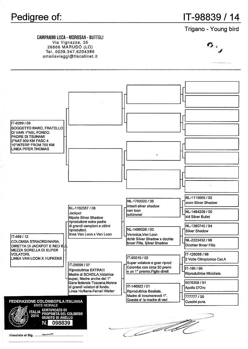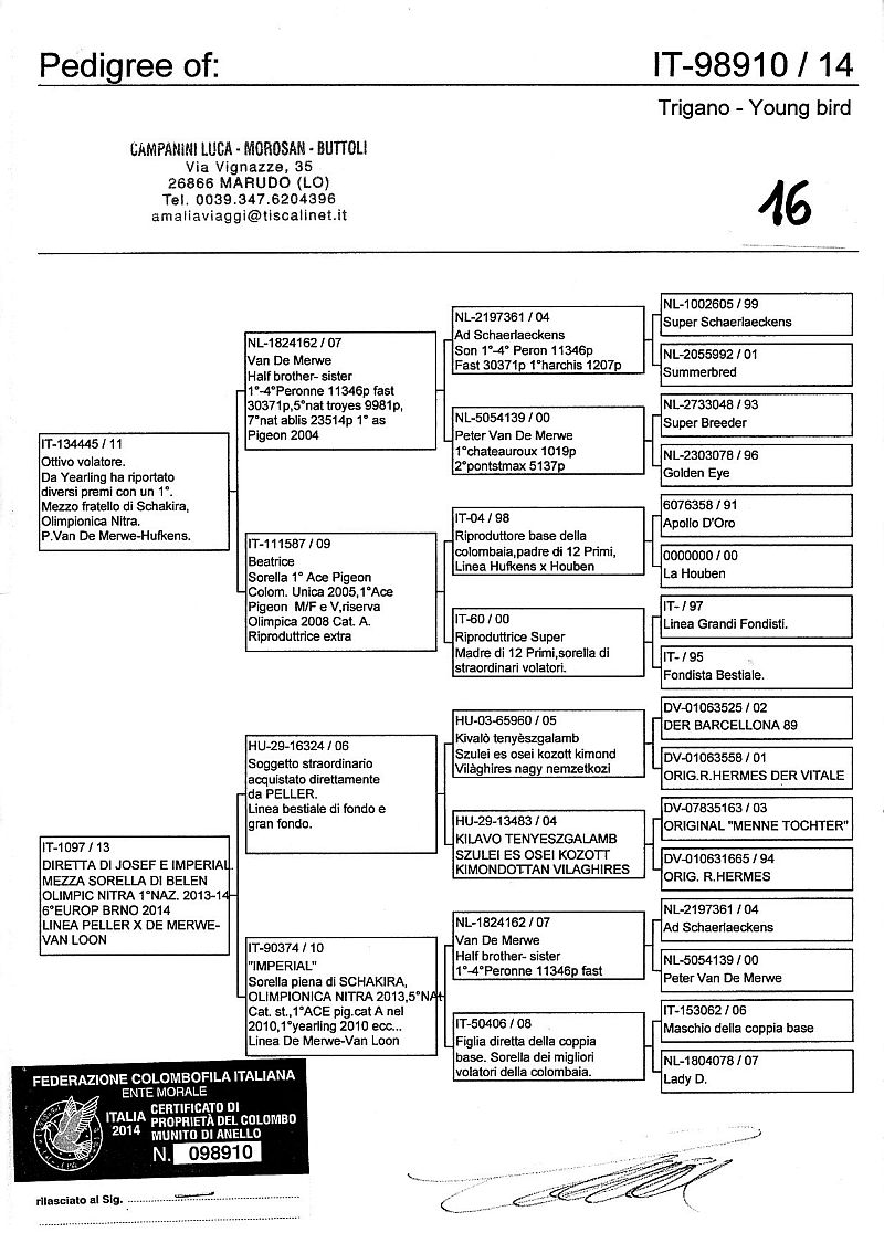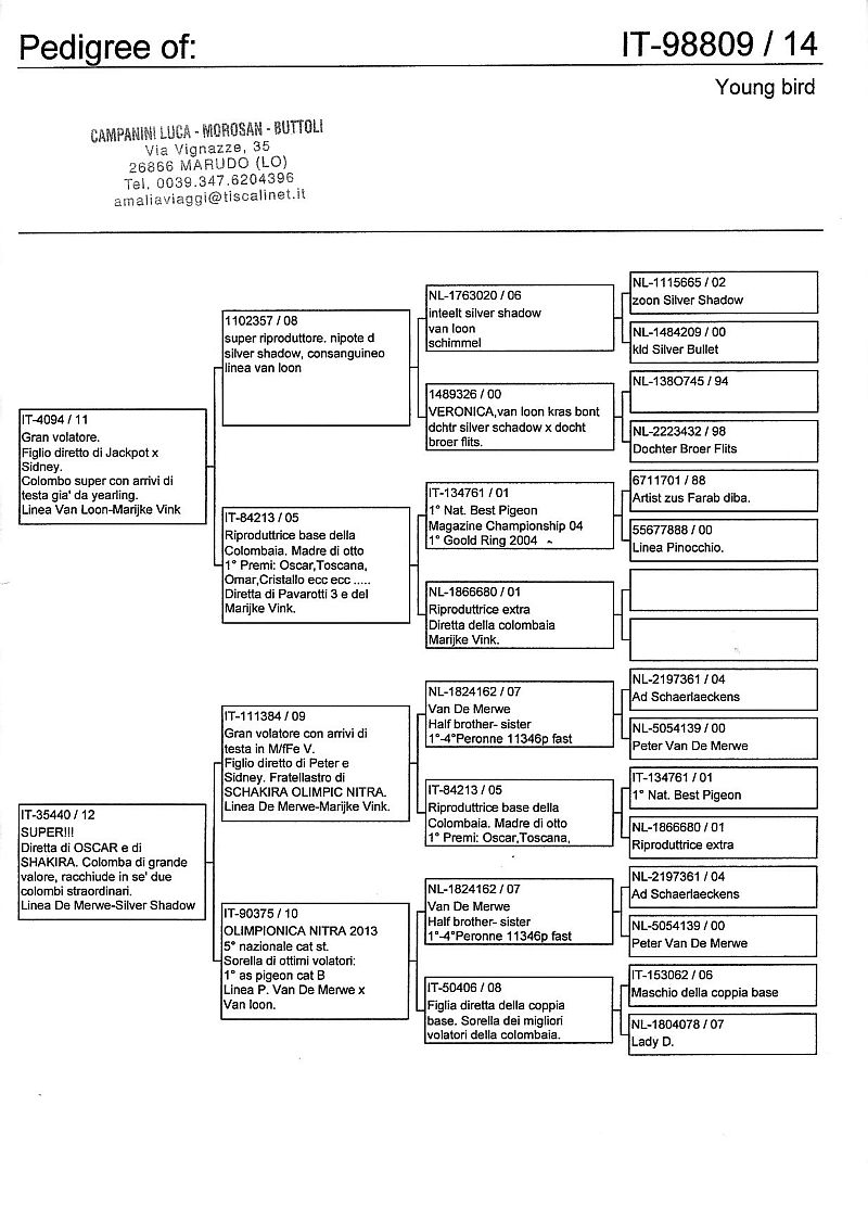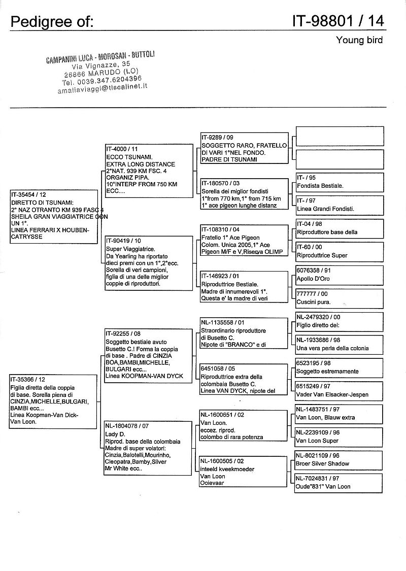 W dniach 10, 11 i 12 maja 2014 roku planujemy zorganizować 3 aukcje gołębi młodych rocznika 2014 tego włoskiego hodowcy. Aukcje będą zorganizowane w Chojnowie, Koziegłówkach i na Wspólnym Gołębniku Mazowsze (Czarna pod Mińskiem Mazowieckim).