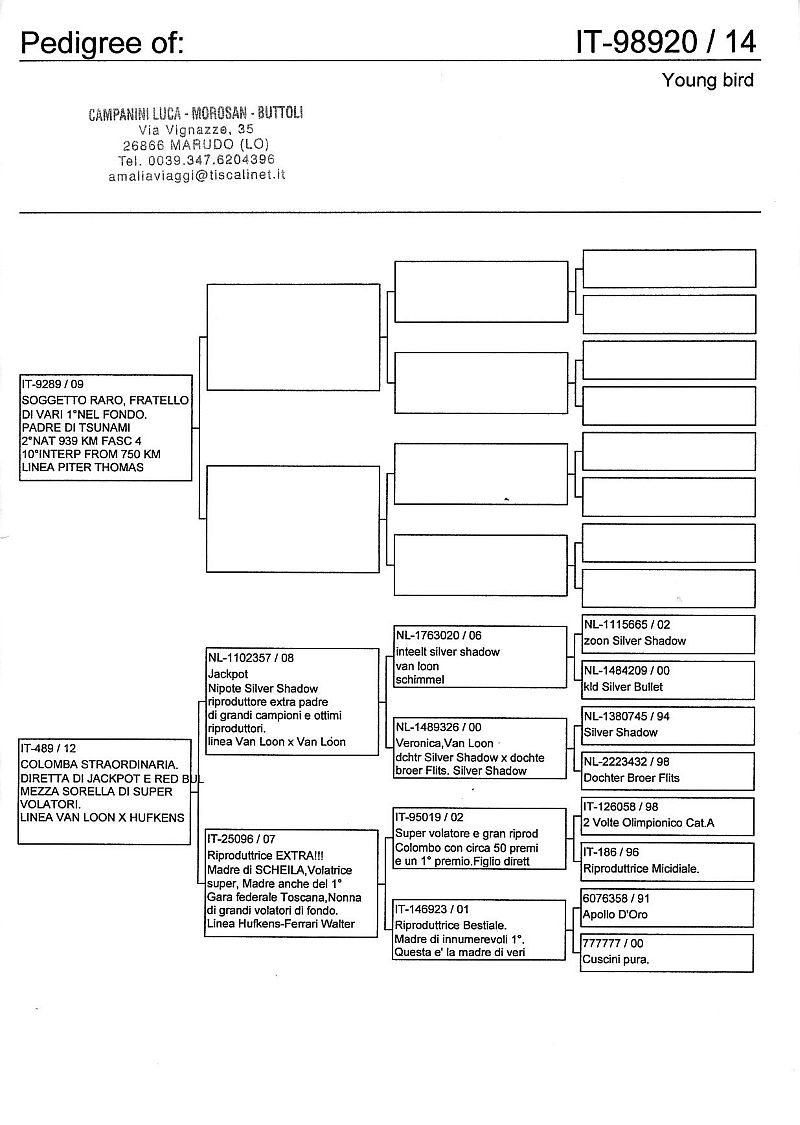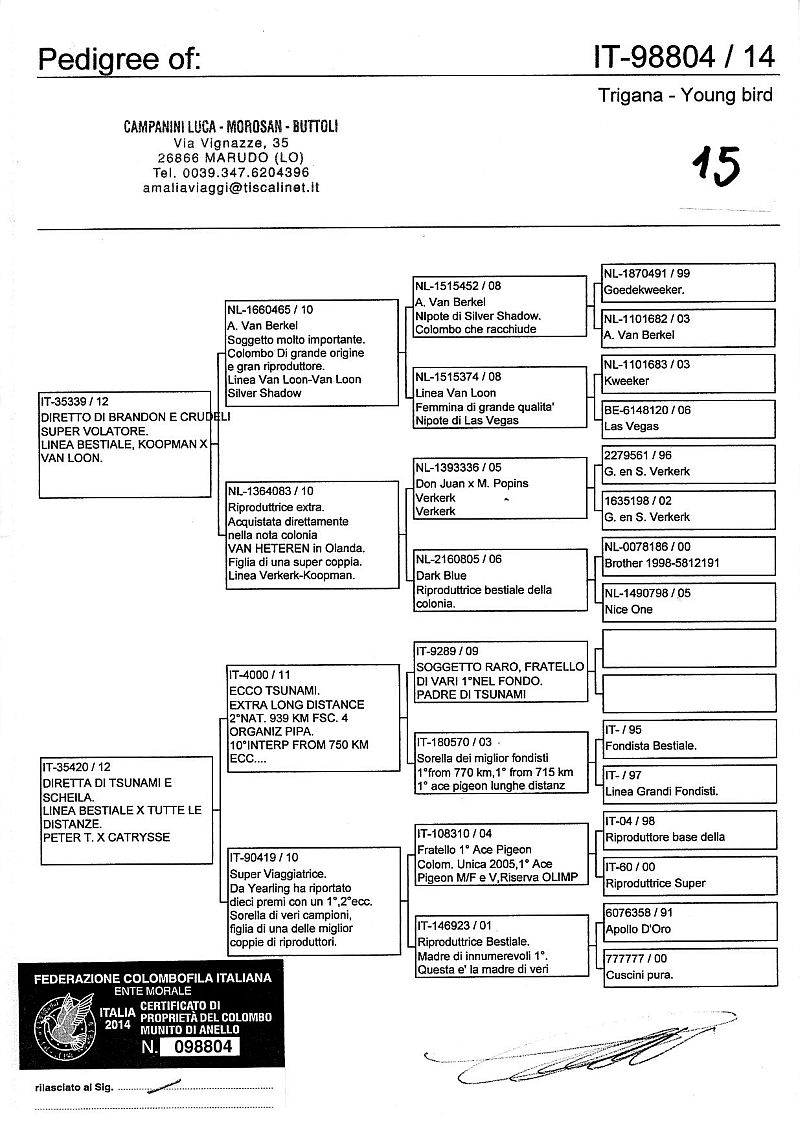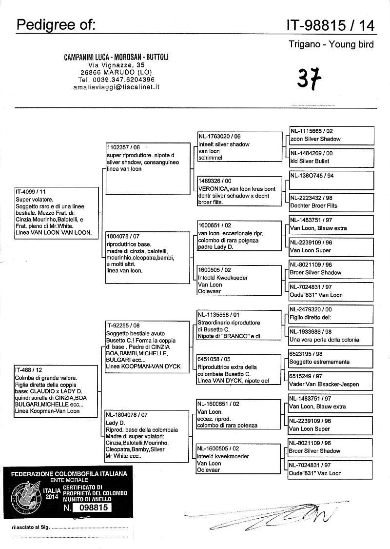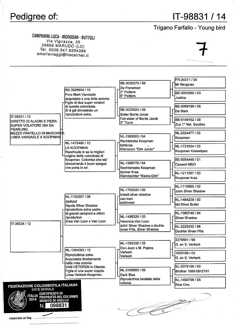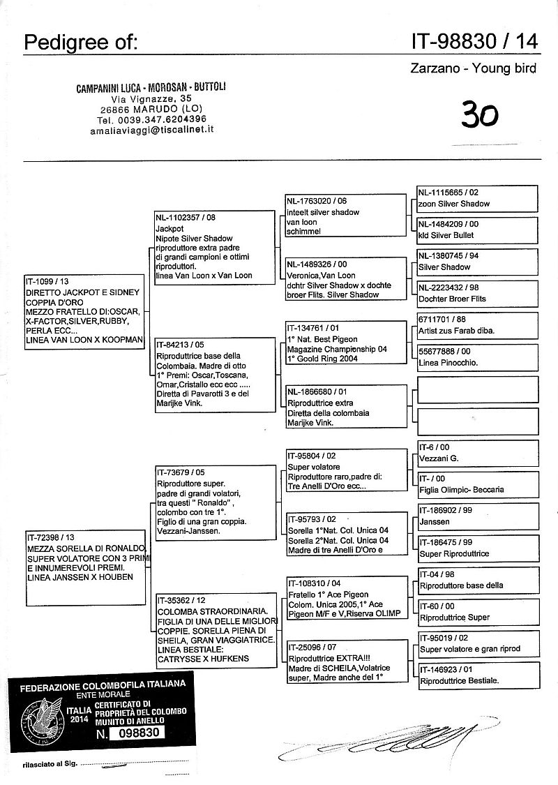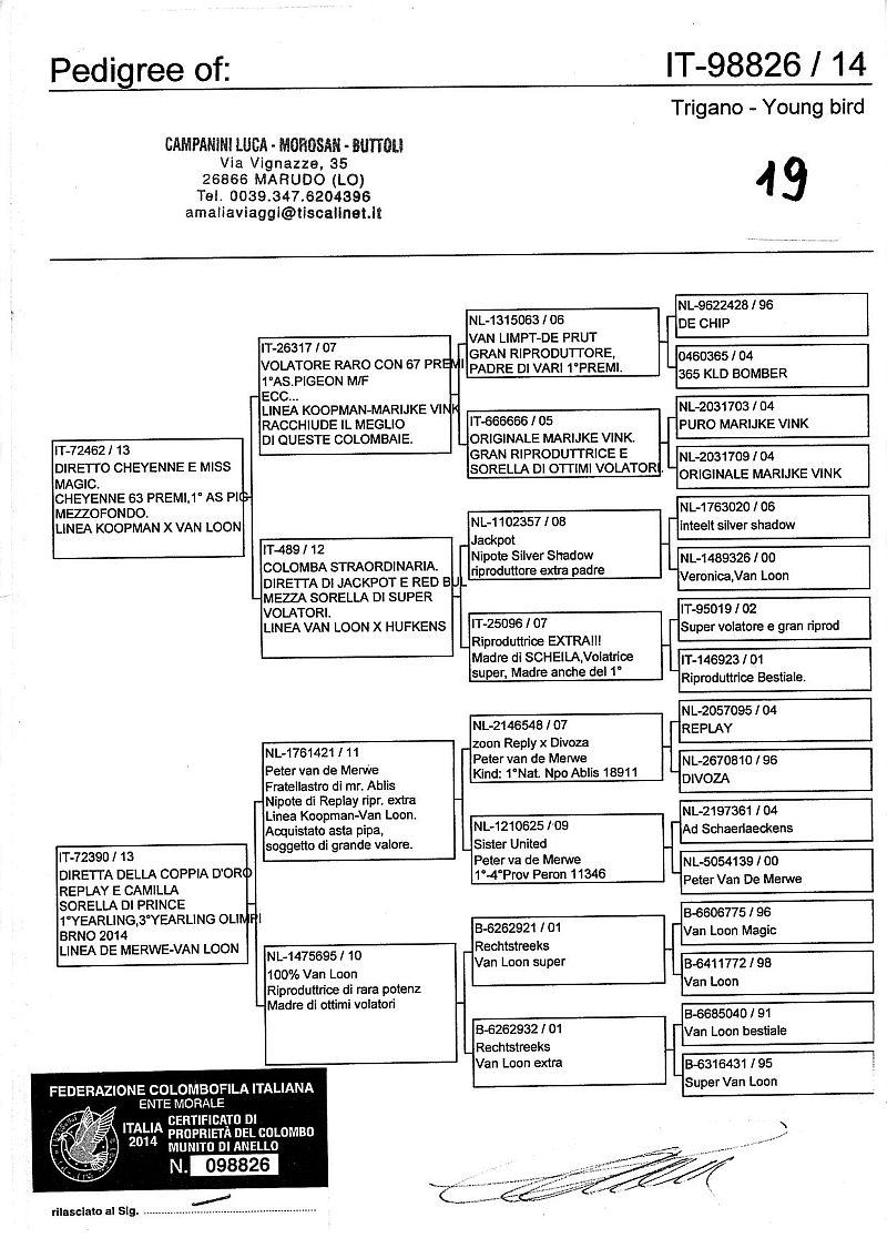 W dniach 10, 11 i 12 maja 2014 roku planujemy zorganizować 3 aukcje gołębi młodych rocznika 2014 tego włoskiego hodowcy. Aukcje będą zorganizowane w Chojnowie, Koziegłówkach i na Wspólnym Gołębniku Mazowsze (Czarna pod Mińskiem Mazowieckim).