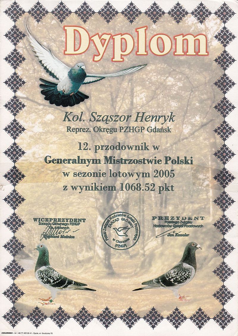 Hodowla gołębi pocztowych - Henryk Sząszor